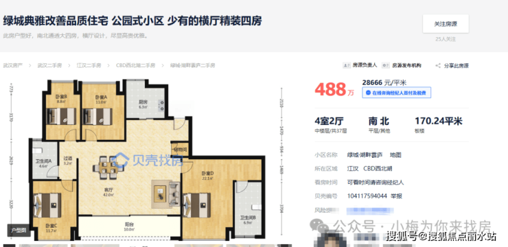 🏠面积170平方,挂牌488万(价格可谈)五房二厅二卫。这个房子是同户型性价比最高的,也是挂牌最便宜的。小区也有其它房源可以对比。居住预算在288万左右这个房子必看