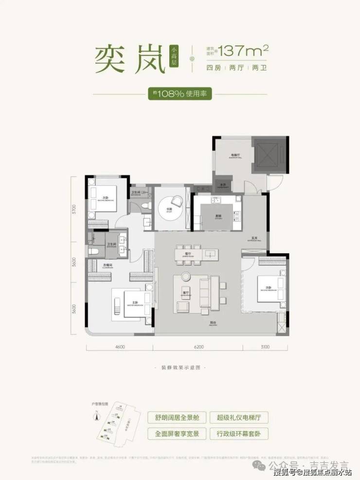 小高「奕岚」约137㎡四房两厅两卫/约108%使用率