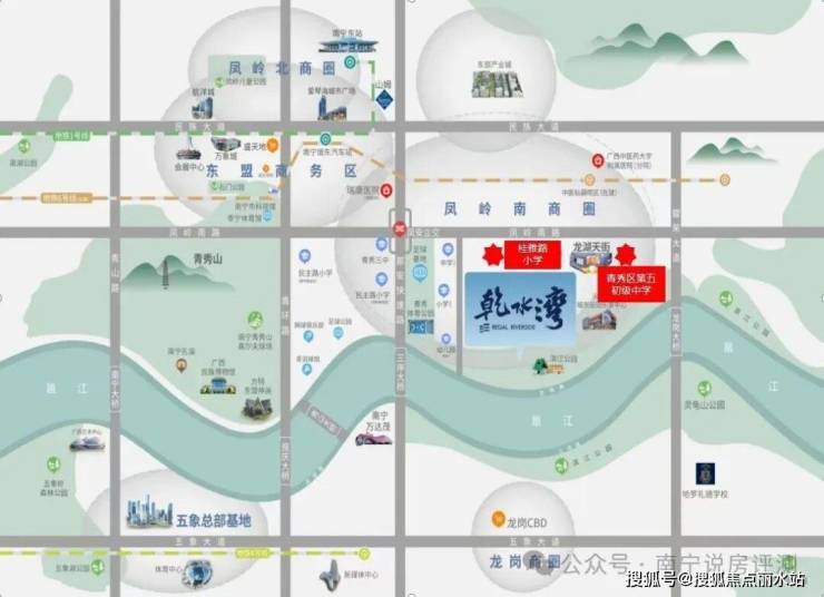 🏙商业:5分钟到达凤岭南商圈(龙湖天街),10分钟到达东盟商务区商圈(万象城、航洋城、盛天地),15分钟达到五象万达茂;