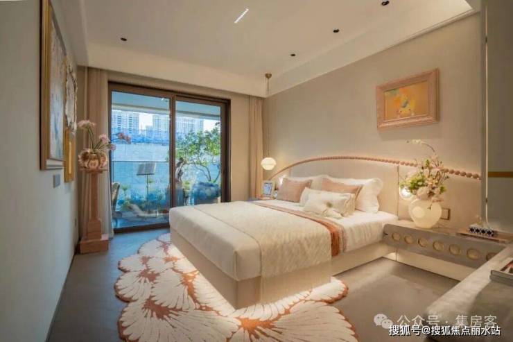 采用“王府中式”设计,大门为歇山顶形制(宽53米、高近11米),配黄铜狮、罗汉松及蓝翡翠奢石。园林融入西湖十景元素,如“花港观鱼”水景、“柳浪闻莺”绿植,并设雾森系统首层单元门厅石材铺就,肌理沉稳。