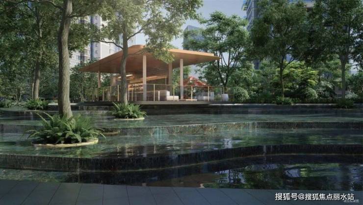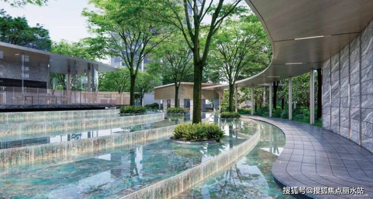 大面积中央水景、水岸会客厅、阳光草坪 ,精妙的动线设计,水与绿意成为了日常生活的背景。