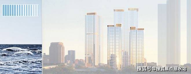 项目从流水中迸发灵感,立面积聚波纹之力,以微弧的波浪元素转移成建筑语言,强化建筑的特征性与在地性。公建化的立面形象,品质感的精工考究,延续二七滨江豪宅的价值感。