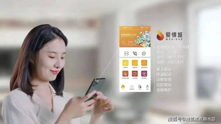 服务模式上,爱情地产以可感知、可追溯、全局智慧管理的智慧社区创新理论为引领,围绕归家动线、居家体验、安全防范等方面,搭建“智慧通行、智慧安防、智慧家居、智慧物业”四大智慧板块,将服务触达“公域 + 私域”多种场景。