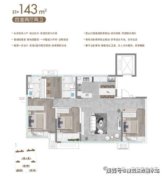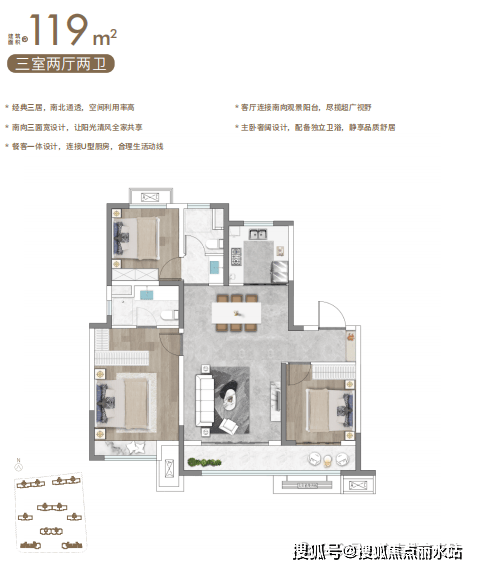 【简介】 精装2T2H ,电梯入户,公摊26.20%,仅1个单元