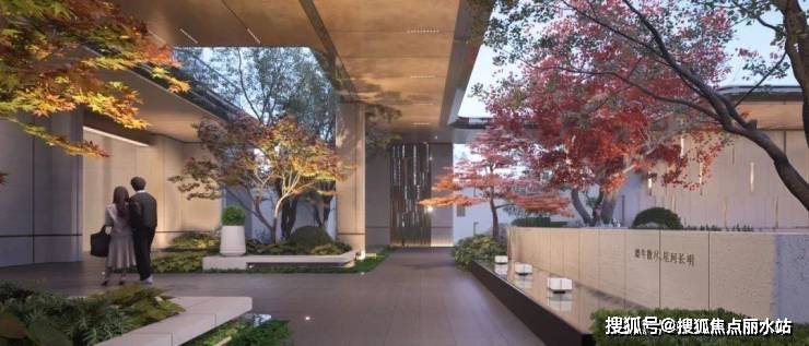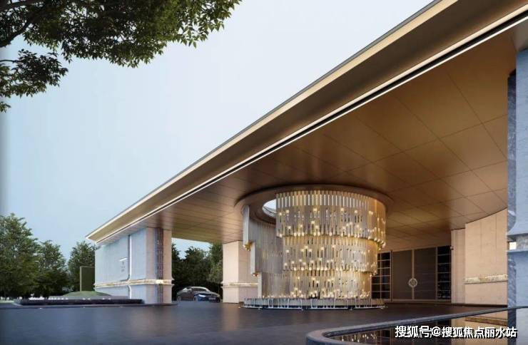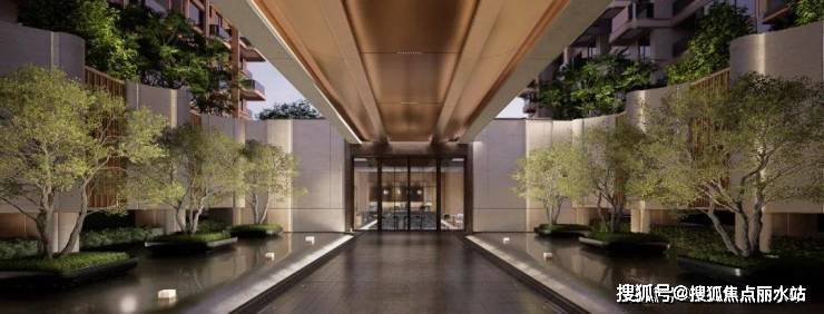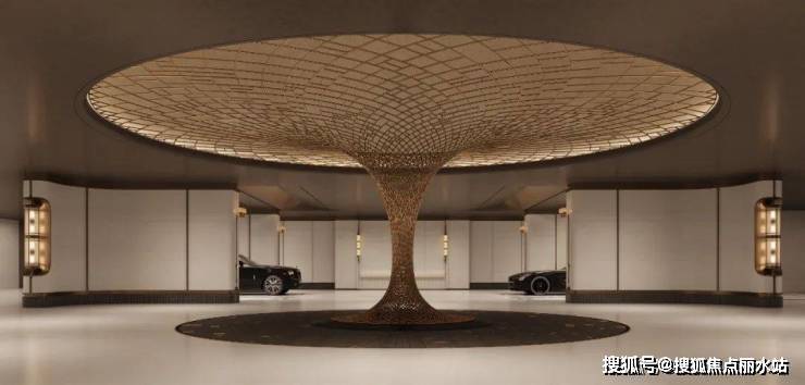 首先看52米宽的社区大门。最亮眼最中心的,是以“嵩山云雾”为主题的雕塑。独创的港湾落客区和双车道进出大门,也充满仪式感。地下中央车站,这可以理解为地下停车场的落客区,不管是业主归家还是访客,既方便又尊贵。以上是第一进,前院区。