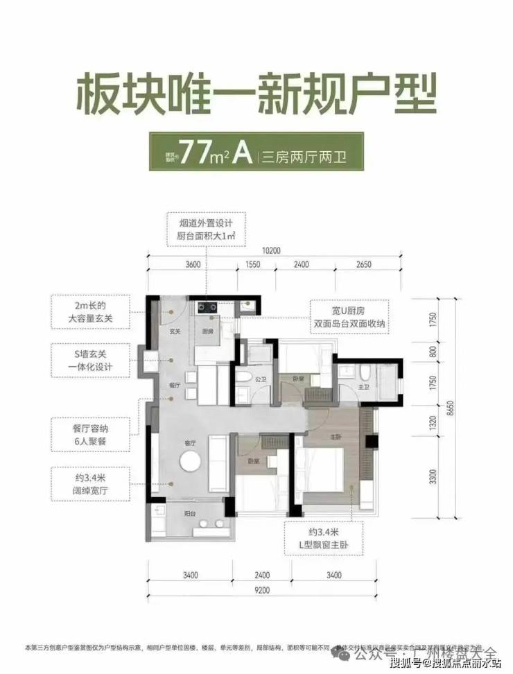 5、产品:项目作为南站首个新规项目,首开77 - 135㎡的三至四房户型,实用率最高可达138%。如今项目加推A2栋,最新面积:88-105-135㎡!
