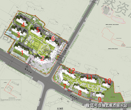 根据规划,该项目由两个地块组成,每个地块各有6栋住宅。其中,西边地块中1、2、4、5、6号楼为29-34层的高层住宅,3号楼是11层小高层;东边地块中7号楼为5层洋房,12号楼为6层洋房,8-11号楼为10-11层的小高层住宅。