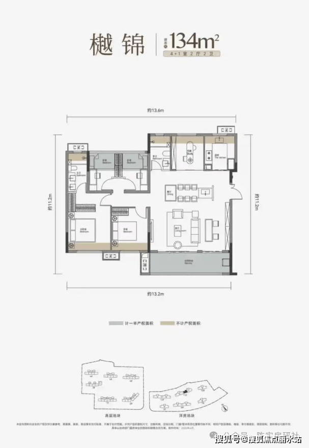 建面约134平4+1房两厅两卫:小高层户型,南北通透,四开间朝南,户型设计很赞,南向阳台很大,还做了横厅,可以做成五房。