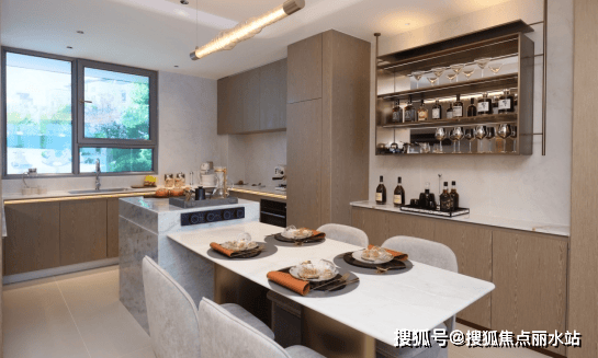相比之下,国信·和悦3.6米面宽的U型厨房+岛台的设计,让很多热爱烹饪、热爱生活的人一见倾心。不但两人备餐没有问题,就是五六个朋友聚会,这个尺度超然的厨房,也能容下所有人的欢声笑语。