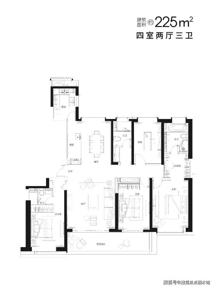 边户,南北通透,三开间朝南,三面采光,动静分区,中西双厨,两间南向卧室均带独立卫生间和衣帽间,另外一间卧室带独立卫生间,该户型私密性特别强。