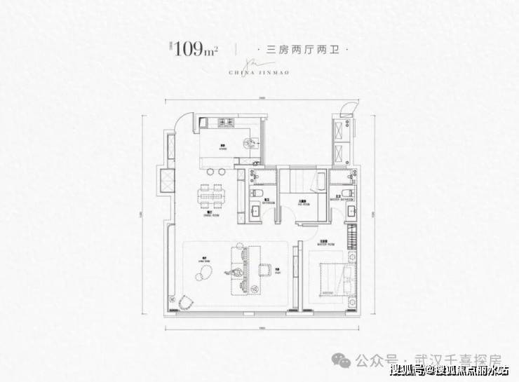 109㎡三房45㎡LDK一体化公设计,南向10.9米面宽,7.6米宽景客厅,95.8%实际得房率;