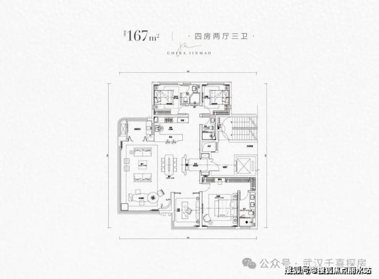 167㎡四房独梯入户、汉阳首个生活功能环幕舱,12米巨幕落地取景窗,超60㎡客餐一体洄游公区,102.5%实际得房率。