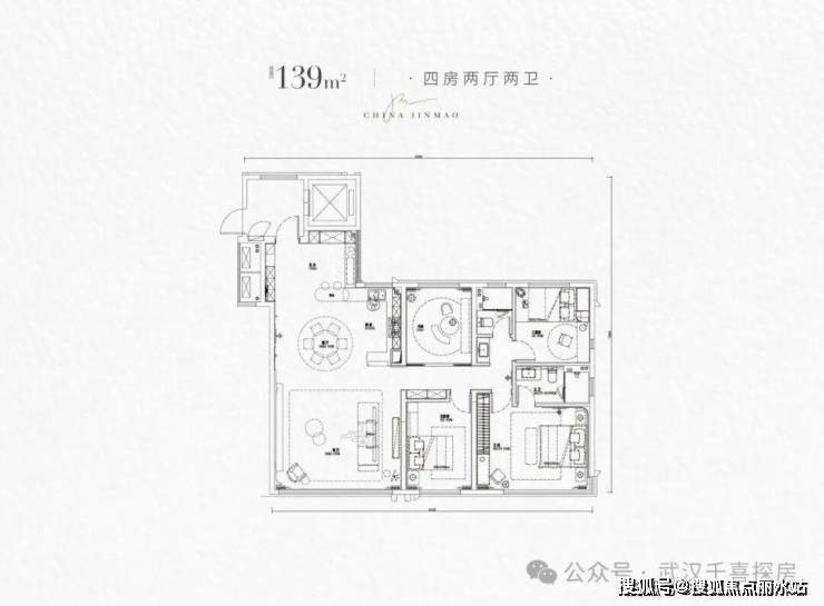 「全国第五座满系作品 金茂全新产品系“满系”产品——是中国金茂“金玉满堂”四大产品之一,寓意圆满丰盈的生活境界,为武汉迭新“小满胜万全”的当代人居哲学