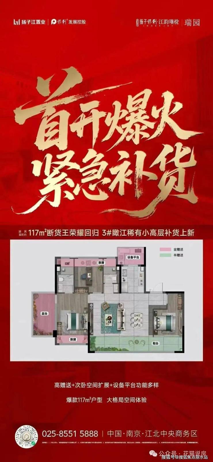 当前项目瑞园3#瞰江小高补仓,117平顶流户型火速去化中,低门槛即可享受越级空间与江景,想抢稀缺房源,来电获取专属建议,别错过核中核入场时机!