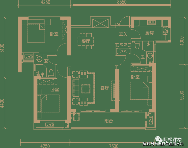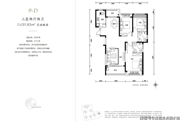 建面约131平户型三房两卫:9号楼边户,南北通透,两开间朝南,南北双阳台。传统三代边户,且在三代边户中也不算优质。