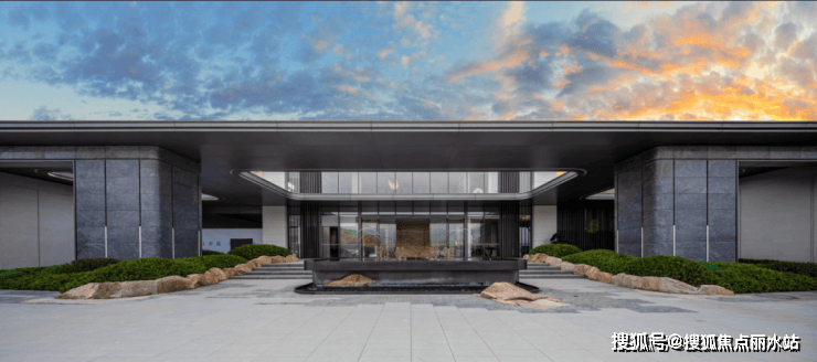 入户大堂采用非对的建筑形式,大面积玻璃与石材形成的虚实对比,石材的持正与铝板的光韵结合,既贵且雅;飘逸挑檐及豪华内饰更加突出大堂的轻盈大气;为业主营造舒适的入户体验。