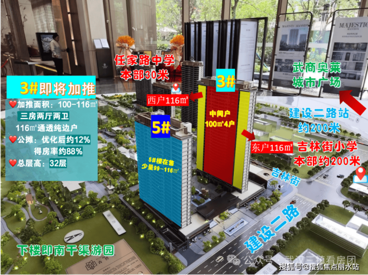 【新奢择址观】非城心不落府武汉价值恒产,惟见长江两岸;武昌二环滨江,未来发展高地2017年,武汉长江主轴“世界级城市中轴文明景观带”规划确立,官宣“两江四岸”是武汉最具价值的核心地段;随着阿里巴巴华中总部、华润武昌万象城等超级项目落成,大武昌滨江商务区已进入加速兑现中;能建青誉府坐落于武昌二环滨江、和平大道城市主轴之上,不仅享受当下各种醇熟顶配资源,更享受大武昌滨江商务区未来价值的无限叠加。