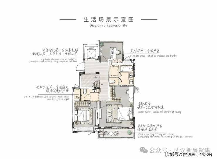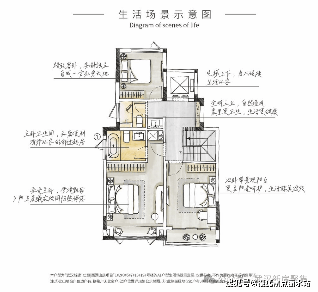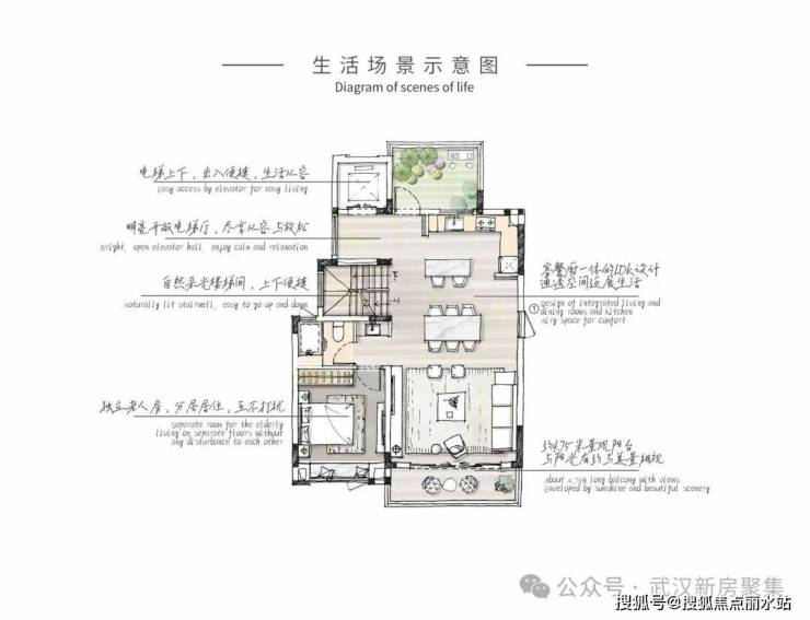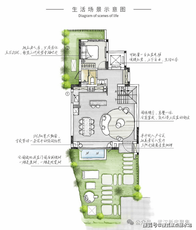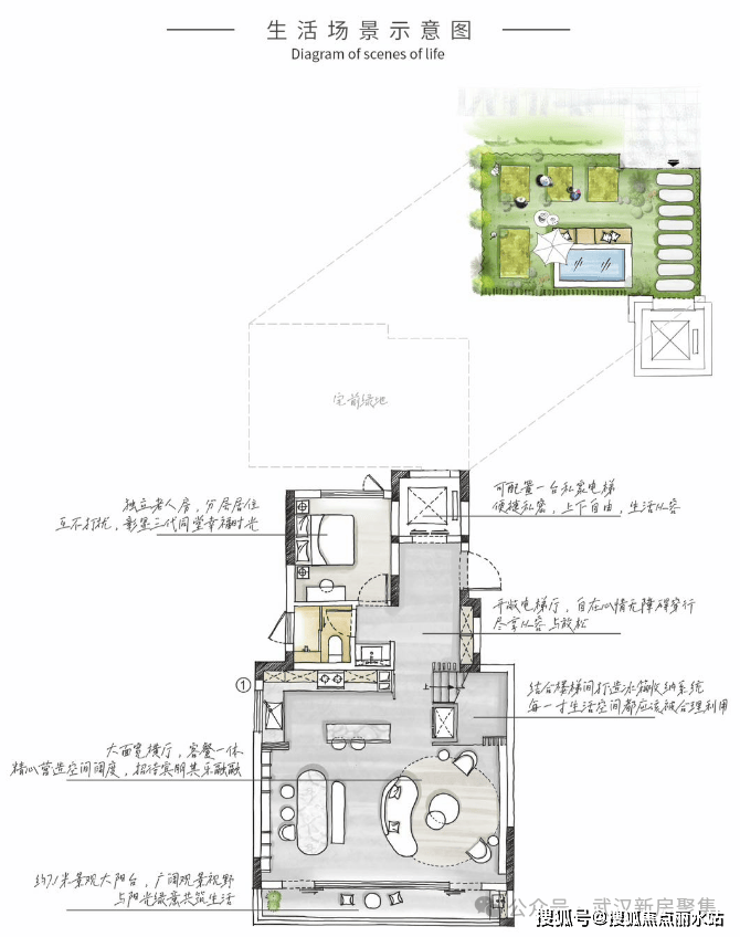 上叠星空露台,星月相伴,望湖之静美、山之苍翠;下叠专属花园,莳花弄草,享自然之静、闲暇时光。