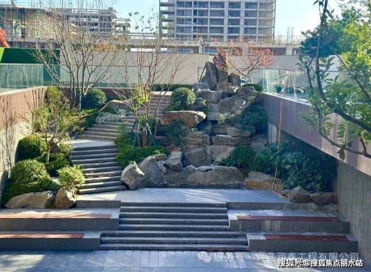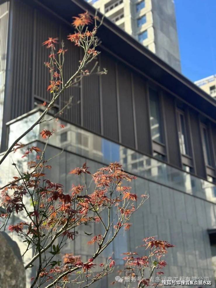 ・枫石映趣意境:红枫与黑石互为映衬,刚柔并济;水流沿石阶跌宕,声色灵动。这一静一动、一暖一冷之间,勾勒出一幅凝练东方画意、又充满现代生命力的立体景观。