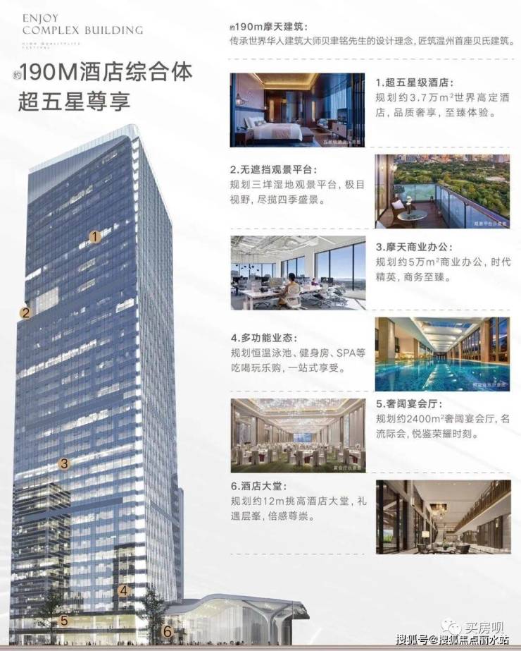 约190米酒店综合体摩天建筑,传承自世界建筑大师贝聿铭先生,由其子——贝建中、贝礼中兄弟创立的美国贝氏建筑事务所操刀设计,以“晚礼服”灵感设计,致敬世界的温州。