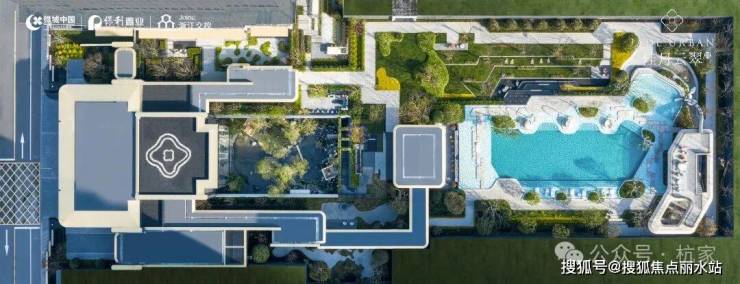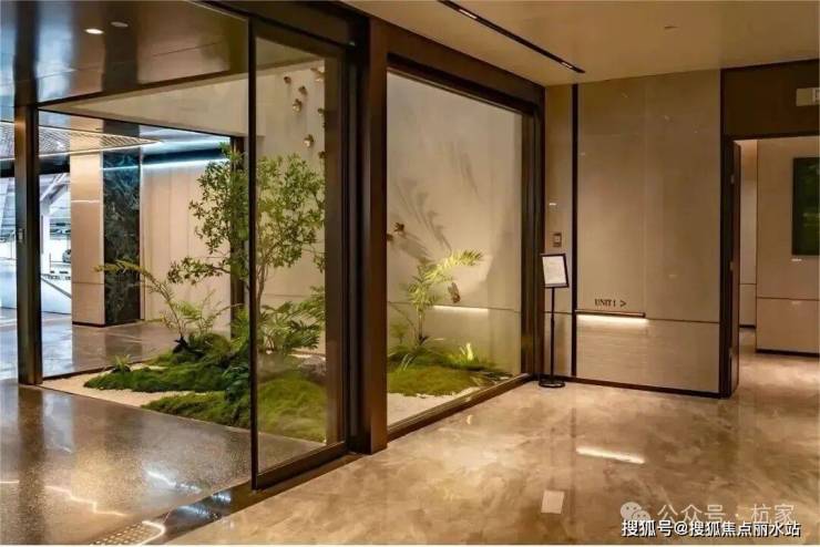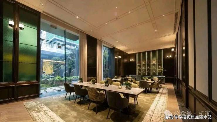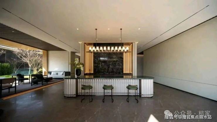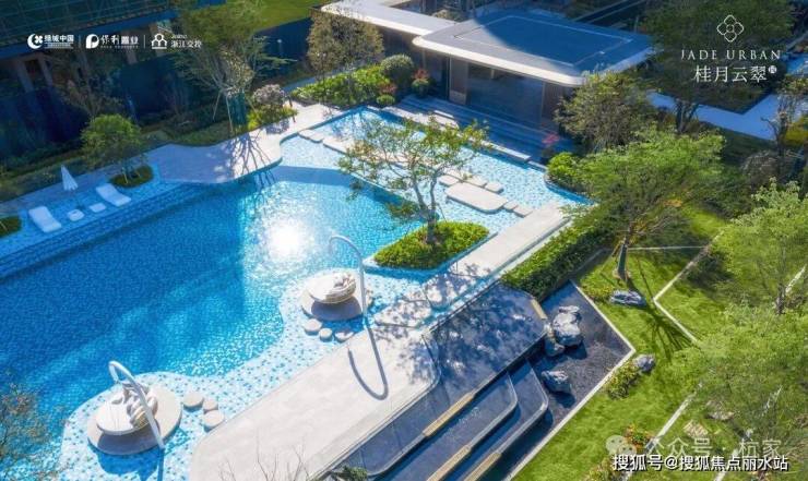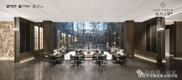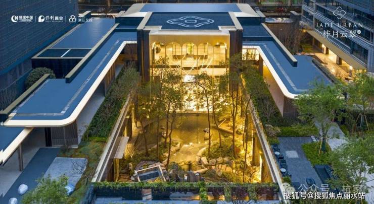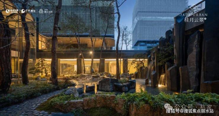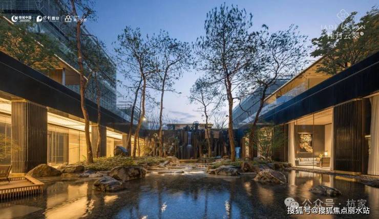 2)品翠溪谷 绿荫下沉庭院特邀近180年历史日本植弥加藤造园社共创设计,以“千里江山图”为灵感取境,巧妙运用景观高差处理手法打造下沉式庭院,围合一方大美隐于内的“泛会所空间”。