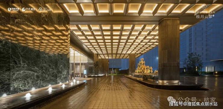 ❖ 翡翠项链 赋新璀璨江南以“波士顿翡翠项链”为设计母本,通过“链式”景观营造手法,将各个建筑景观节点逐一串联,形成可游可赏的归家动线,营造高浓度生活体验。1)翡月之门 精质翡翠门庭约50米宽幅恢弘大门庭、环岛式酒店落客区、朗阔挑高大堂,塑造层层叠翠归家仪式,辉映江南的封面,尽显翡翠的昭示感。