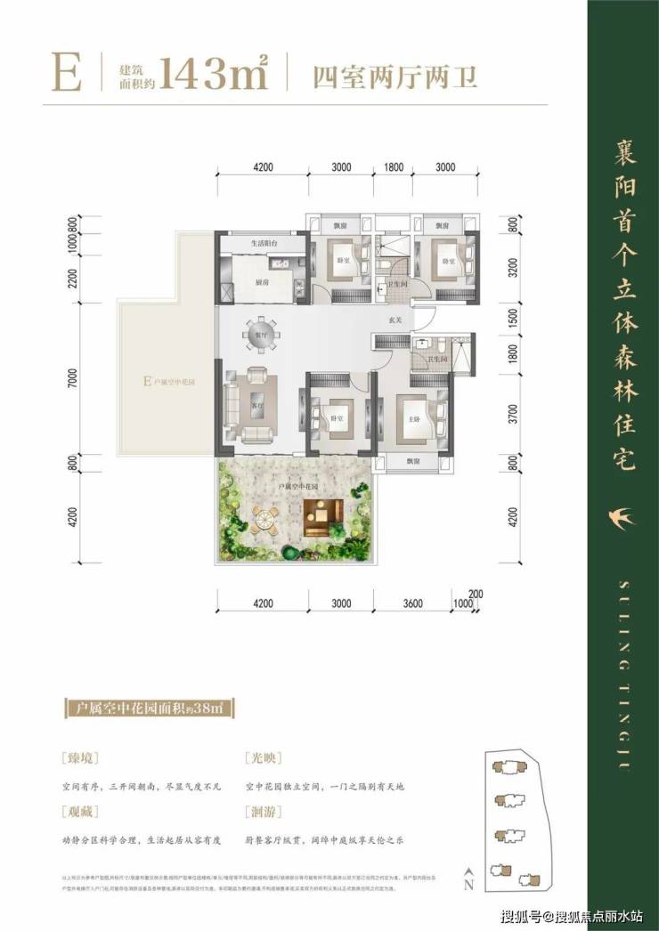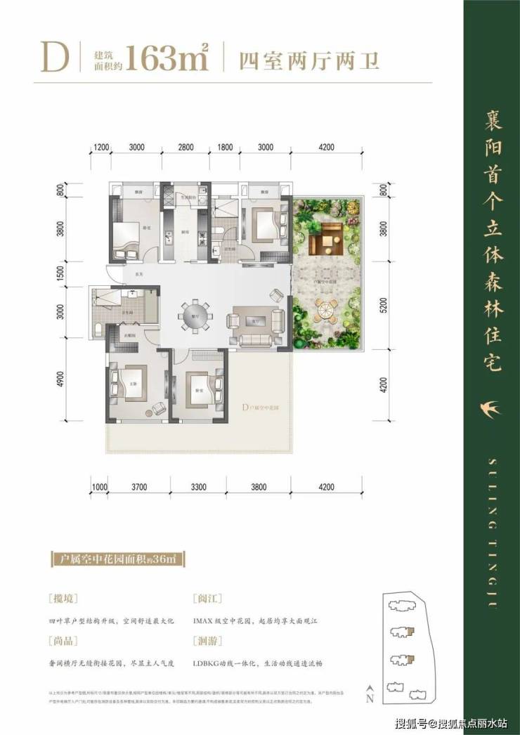 襄阳苏岭汀居位于襄州区航空路与洪山路交会处,南面唐白河,与苏岭山隔水相望。项目由湖北森德润投资有限公司开发,容积率2.5,绿化率暂无明确数据。项目规划5栋13-31层住宅,包含118-292㎡的瞰江大平层和252㎡的揽江复式,主力户型为130-160㎡的四房,占比约80%。 项目特点在于其第四代立体森林住宅设计,采用奇偶错层手法布局6米挑高空中花园,户均得房率超110%,空中花园面积赠送率最高可达39.2%。园林景观以苏岭山文化为基底,打造1.6万方江南园林,整体采用“六境伴一园”布局,部分楼栋一层设有架空层,增加社区互动空间。 此外,项目规划约1400㎡的苏派文化街,未来将引入高端休闲娱乐、城市书吧、欢乐亲子等业态。苏岭汀居为现房销售,所见即所得,购房者置业更有保障。
