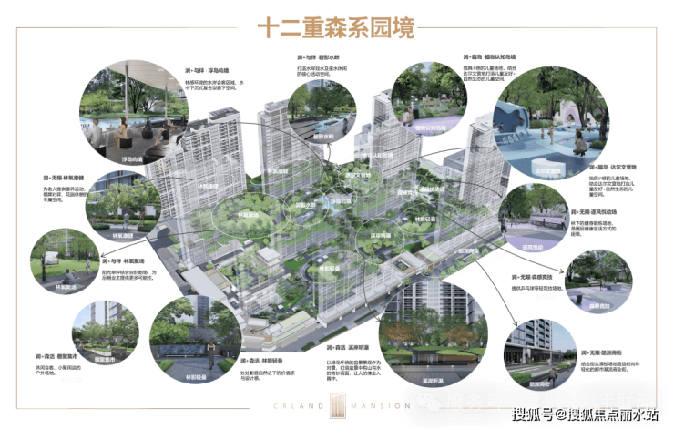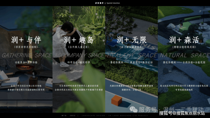 景观设计上,特邀纬图设计创始合伙人、设计总裁李卉,循迹江水文化为灵感,将森系造景手法与当代园林相结合,勾勒都市生活绿岛。 在近4.7万方的园林中,规划三重润心归家体系,打造以“润+与伴”、“润+趣岛”、“润+无限”、“润+森活”四大模块为主题的十二重森系园境。