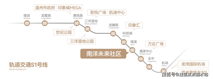 作为温州新一代TOD开发项目,南洋未来社区无缝连接S1线瑶溪站,1站即达万达广场、印象汇等商业综合体,4站可达鹿城核心的惠民路站,同时经S1线还可直接到达温州南站、温州东站(规划)、龙湾国际机场并换乘至S2线,出入市区、链接全国。在社区外,坐拥金丽温高速、南洋大道、瓯海大道等市级快速交通大道,畅享便捷交通。
