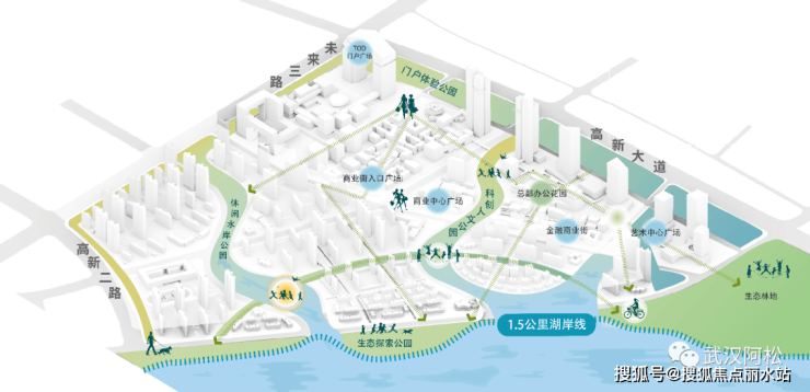 从总体规划来看,项目对标美国硅谷,将吸收Palo Alto科技小镇模式的精髓,遵循“低密度、小街区、大开放空间”的规划理念,打造具有全球影响力的新一代科技园区。项目未来将为光谷科技精英,提供一种可持续发展的生产、生活与生态环境。