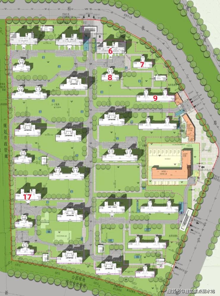 6、7、9号楼为一线临休闲水岸公园的“楼尊”。8号楼居于社区中部,园林景观视野优越。17号楼则为临未来三路的封面楼栋。