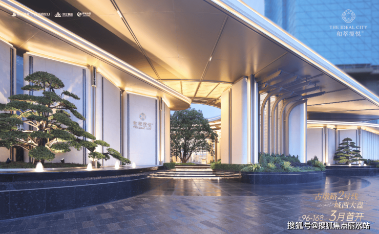 和萃揽悦园的建筑由著名的gad亲自操刀,四面铝板+玻璃的外立面,色调金色端庄。