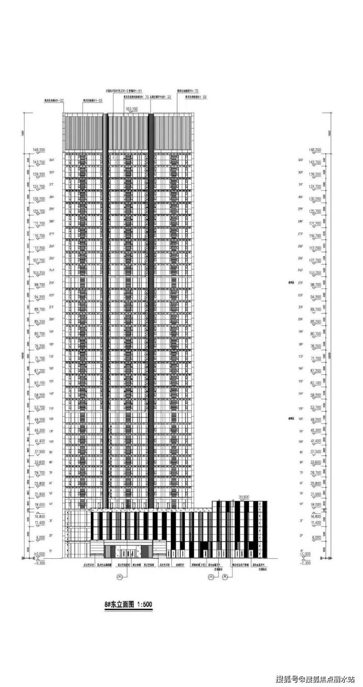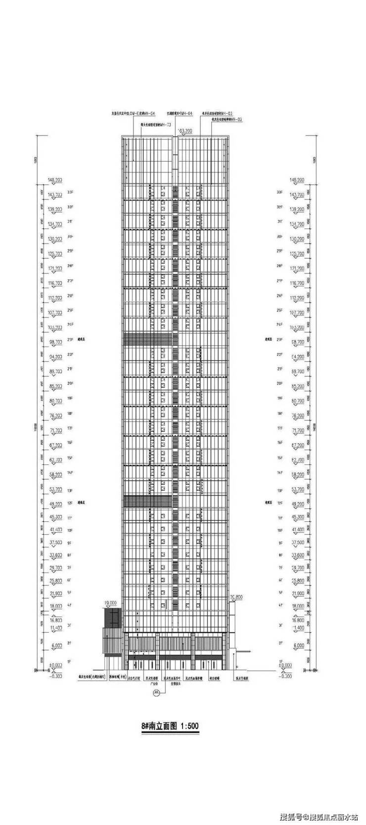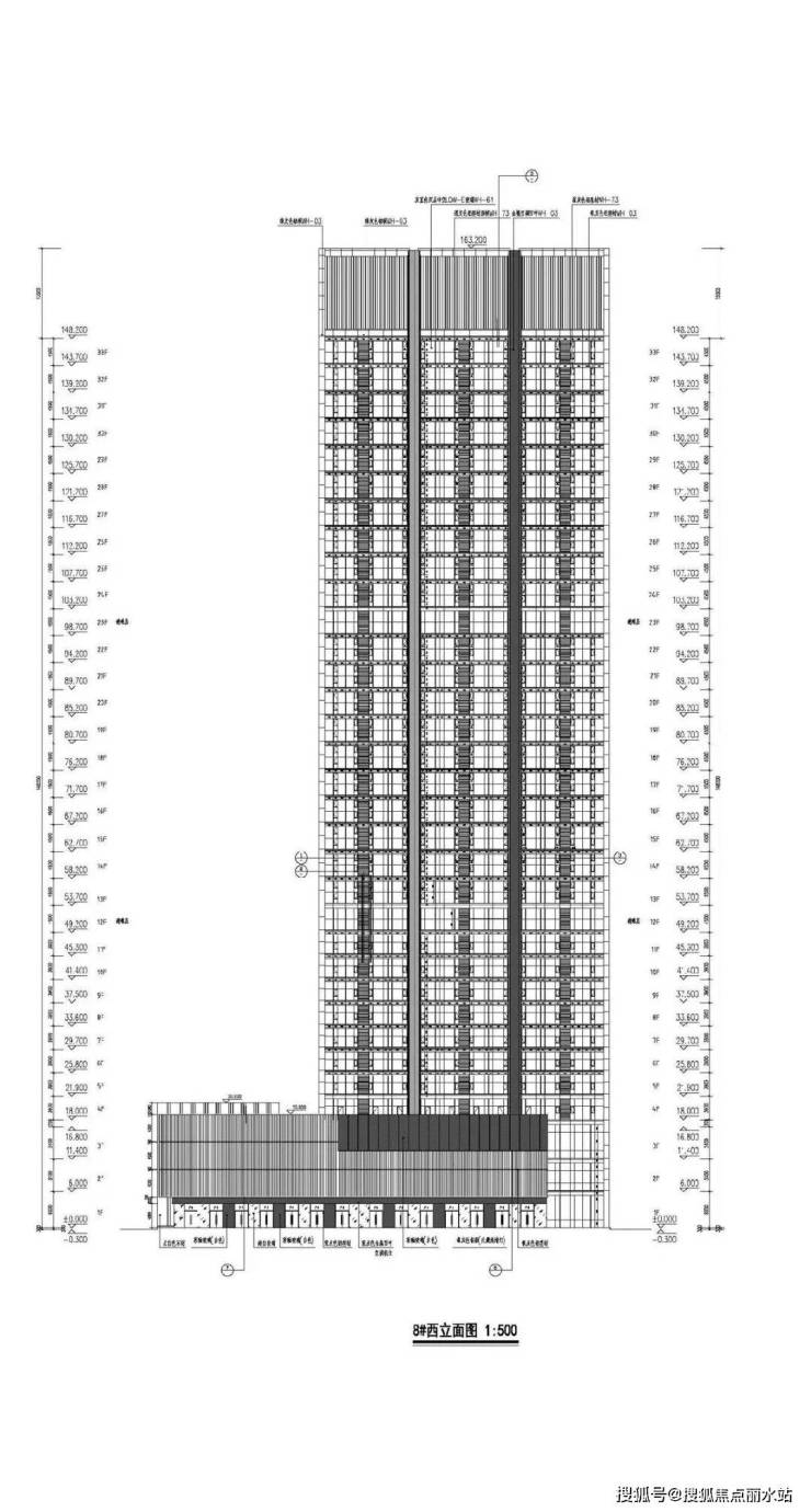 办公建筑朝向江面错位布局,提高景观面长度充分获取溢价。运用简洁有力的手法切分出竖向与横向肌理,大面积玻璃材质的运用,构筑了观景的通性透视野。