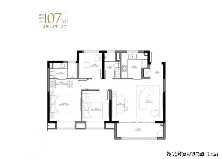 建面约107㎡ 三房两厅两卫(舒适改善):介于103㎡与129㎡之间的舒适之选,专为追求更高居住尺度的三口之家设计。全明通透户型,南向三开间,采光充足;空间布局合理,动静分区明确,避免生活干扰;主卧套房设计,搭配全景飘窗,延伸观景视野;细节处预留充足收纳空间,提升居住整洁度,总价470-505万。
