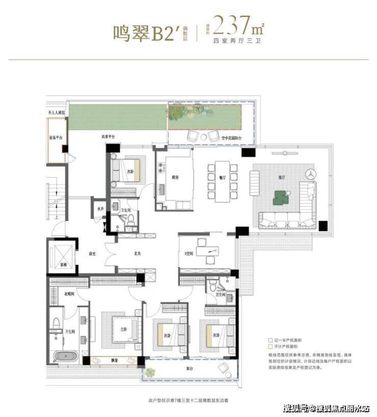 通过“全景舱”无柱转角空间设计,大宅内部全景落地窗如一幅展开的画卷,将约270°的江景视野尽数纳入。例如,鸣翠B2’建面约237㎡,进门尺度玄关设计,颠覆性270°环幕无界开阔餐客横厅,加上南向空中花园阳台,让空间完全打开,成为家族共鸣安放之地。