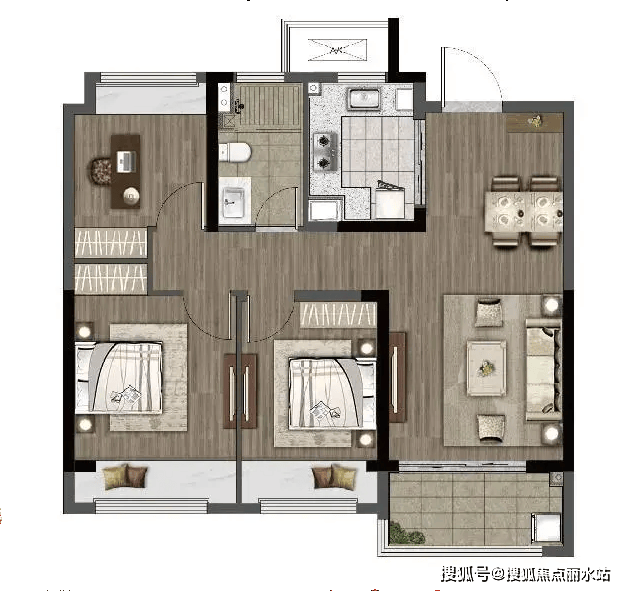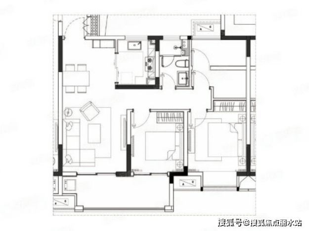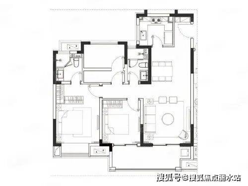 整个户型空间布局合理,做到了干湿分离、动静分离,方便后期生活;卧室厨卫等各个功能区的面积大小都比较合理,居住体验便利,整体舒适度高。