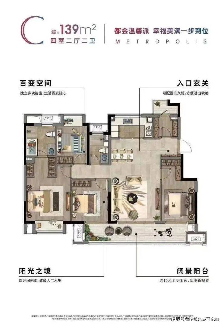 两室朝南、两室朝北,朝南两房和书房带有飘窗,横向客餐厅带有大阳台,从两个南向卧室,到自由变换的书房;每一间的大小都恰到好处。