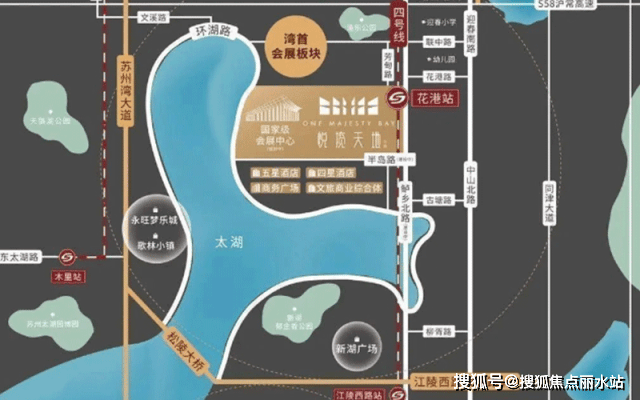 湖湾天地项目位于吴江苏州湾太湖梢2号地块,地铁四号线花港站出口,总体占地约11.88万方,地上总建筑面积约30万方。项目规划了高品质住宅、投资型酒店即40年叠加别墅、配套商业街、公寓及星级酒店,打造国际一线湖岸生活线。