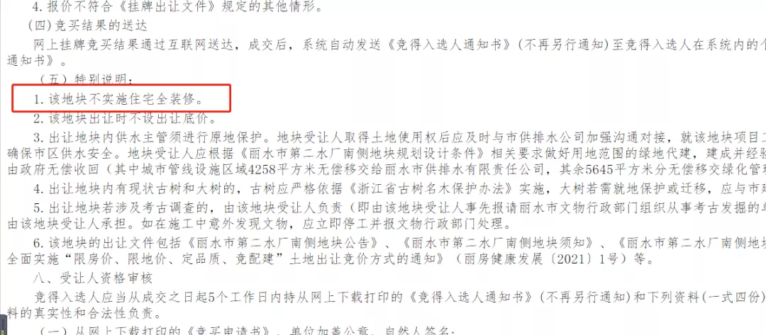 4.该地块不实施住宅全装修