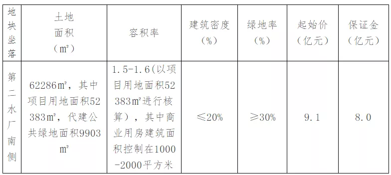 (五)容积率:1.5-1.6(以项目用地面积52383㎡进行核算),其中商业用房建筑面积控制在1000-2000平方米