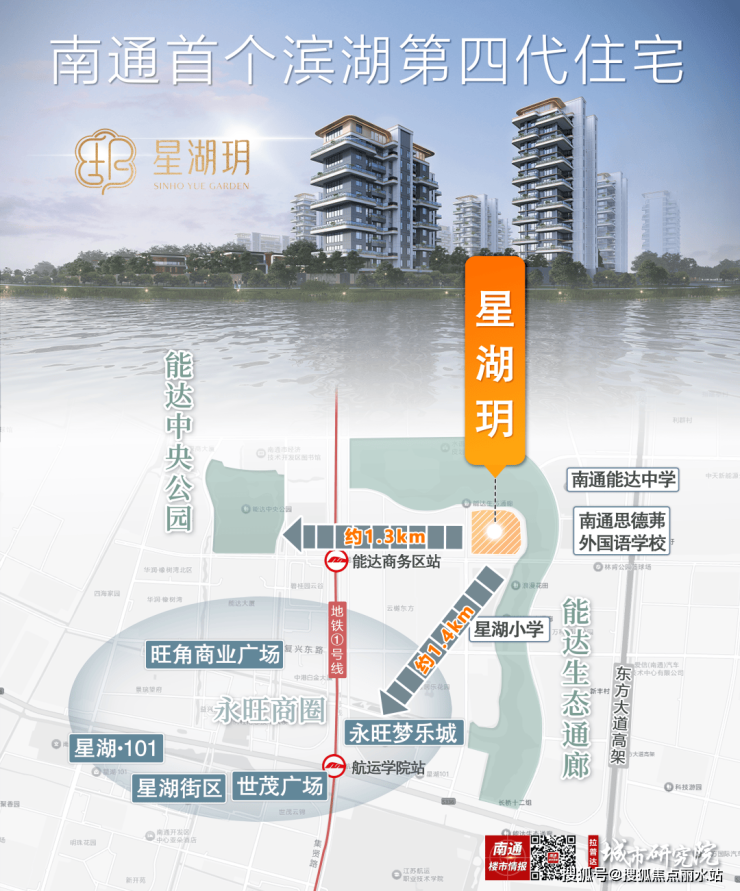 项目位于开发区能达板块核心,更是直线星盛湖不足百米,拥有南通唯一的“滨湖四代宅”标签。