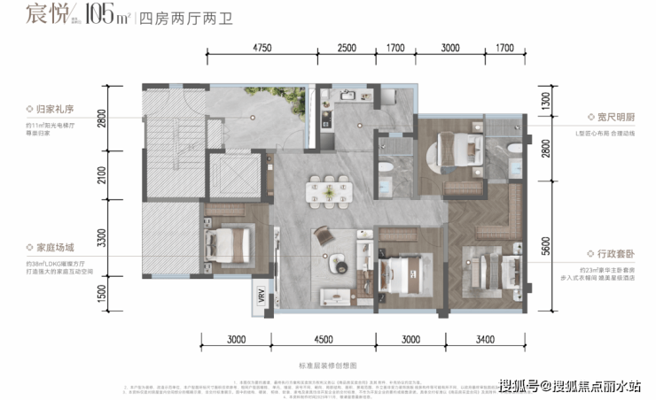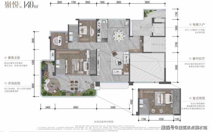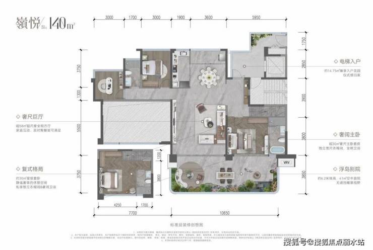 建筑面积约105㎡四房两厅两卫、约119㎡五房两厅两卫、约140㎡四代住宅