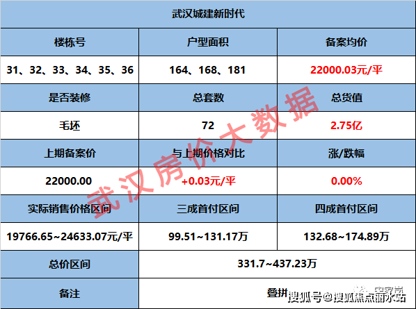 据武汉房价大数据信息:近日,武汉盘龙城宋家岗楼盘“城建新时代”已获预售许可证,即将开盘,此次叠拼备案均价22000元/㎡ 持平上期。