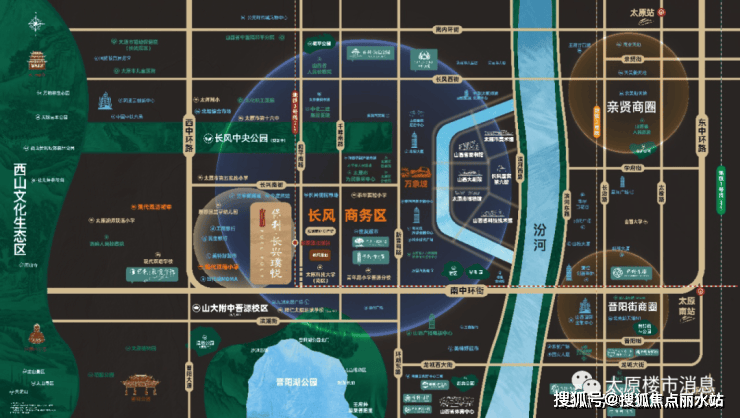 保利长兴璞悦位于太原南中环北侧,西中环的东面,属于环内优质地块。离长风商务区不远,离晋阳湖公园开车五分钟左右。靠近和平南路,有地铁三号线站点规划。