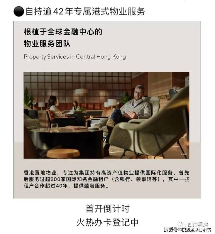 香港置地自持物业:怡置物业,成立42年,专注服务于高净值家庭。提供资产维护服务、智慧生活服务、圈层社群服务以及个性定制服务等。如为工作繁忙的业主提供早餐订餐、家政预定等贴心服务。