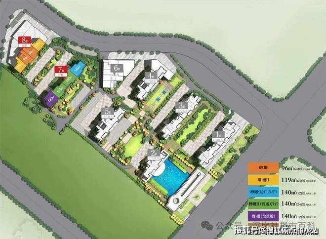 8号楼总高33层,一楼架空,与7号楼的楼间距约39米。