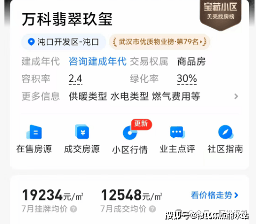 经开区价格比较高的二手房是万科翡翠玖玺,7月份挂牌均价约19234元/平,7月成交均价约12548元/平,近90天成交了5套,成交价格与武汉城建云栖湖岸目前主推楼栋的新房价格相当。