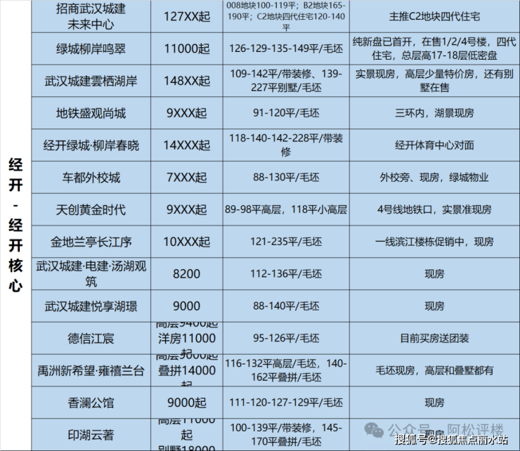 片区内的热门项目招商武汉城建未来中心折后14XXX元/平起,其中包含现房、准现房,四代住宅;新开盘的绿城柳岸鸣翠毛坯折后约11XXX-14XXX元/平。