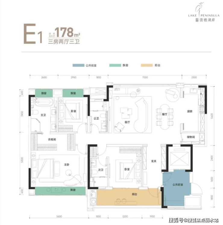 建面约178平 三房两厅三卫:纯板楼户型,空间非常阔绰的三房,南向大阳台,完全可以做三个套间,属于舒适性很高的大三房。