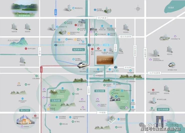 •立体交通:轨交2/4/6号线、北环快速路、苏州火车站、京沪高速、常台高速等